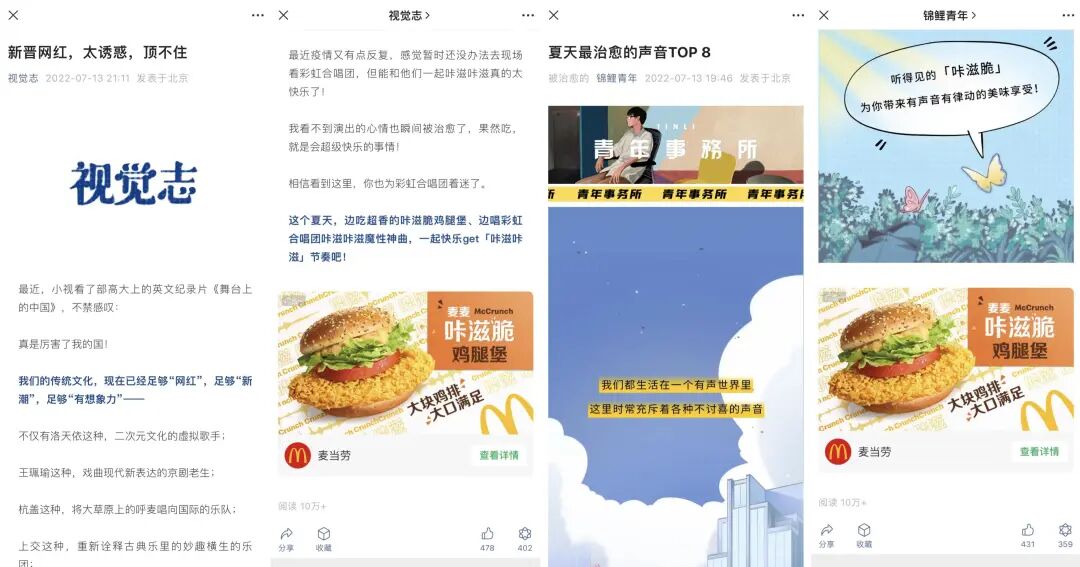 「视觉志」及部分矩阵号与麦当劳合作的内容 ▲ 图片来源:「视觉志」及其矩阵公众号