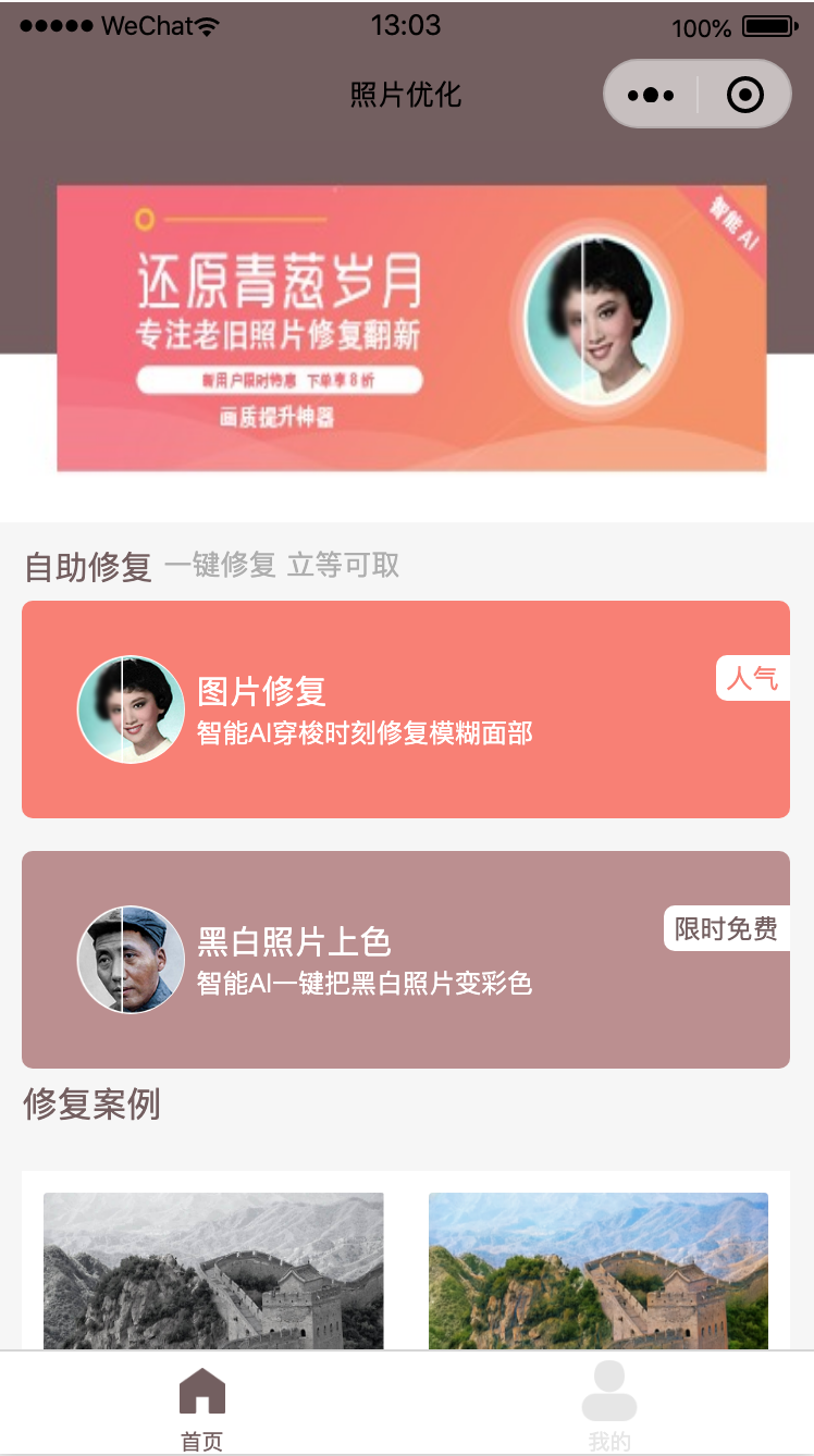 百度key的配置 想审核ai平台的权限。需要[黑白图像上色]和【图像清晰度增强】这二个接口权限。 在云函数 getBaiduAccessToken的index.js中 把apiKey 替换为百度ai申请的appkey 把 secretKey替换成为 百度ai审核的secret秘钥然后更新云函数即可。