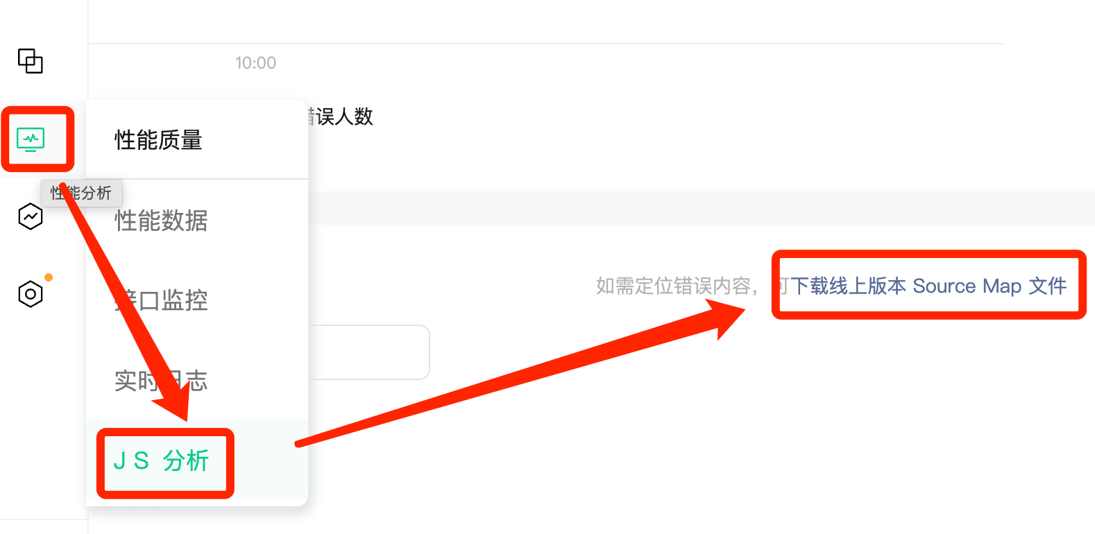 前往 We分析 登录后,进入左侧菜单栏性能分析/ JS分析 ,点击下载线上SourceMap文件。