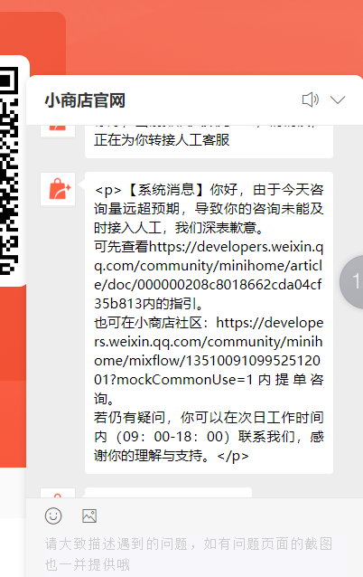 2.微信小商店客服,我通过排队两天等待几十个小时接通人工对话框客服,通过沟通,回复大致意思是,需要和微信支付商户平台对接,他们不管结算的事情,让我找微信支付商户客服。