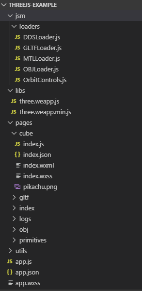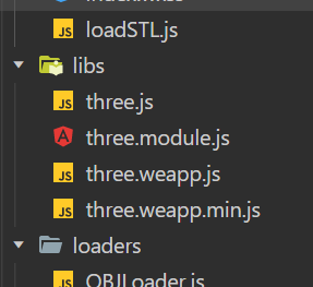 下载https://github.com/yannliao/three.js项目中build目录下的three.weapp.min.js到小程序相应目录,如: