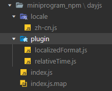 gulp.task('buildPlugins', () => { // 按需拷贝(否则太大了) const names = [ 'updateLocale', 'localizedFormat', 'utc', 'timezone', 'relativeTime' ].join(','); // 注意('dist'路径。你的文件结构可能不同) return gulp.src(`node_modules/dayjs/plugin/{${names}}.js`).pipe(gulp.dest(`dist/miniprogram_npm/dayjs/plugin`)) });我手动把 zh-cn.js 从 dayjs 的包中,复制到自己项目下,可以解决