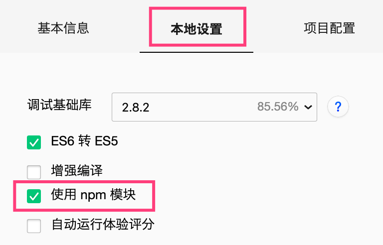 然后打开开发者工具,在本地设置中,勾选使用 npm 模块,如下图: