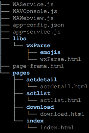 对照拆包的文件列表,wawebview,page-frame,*.html 就是view层。如下图: