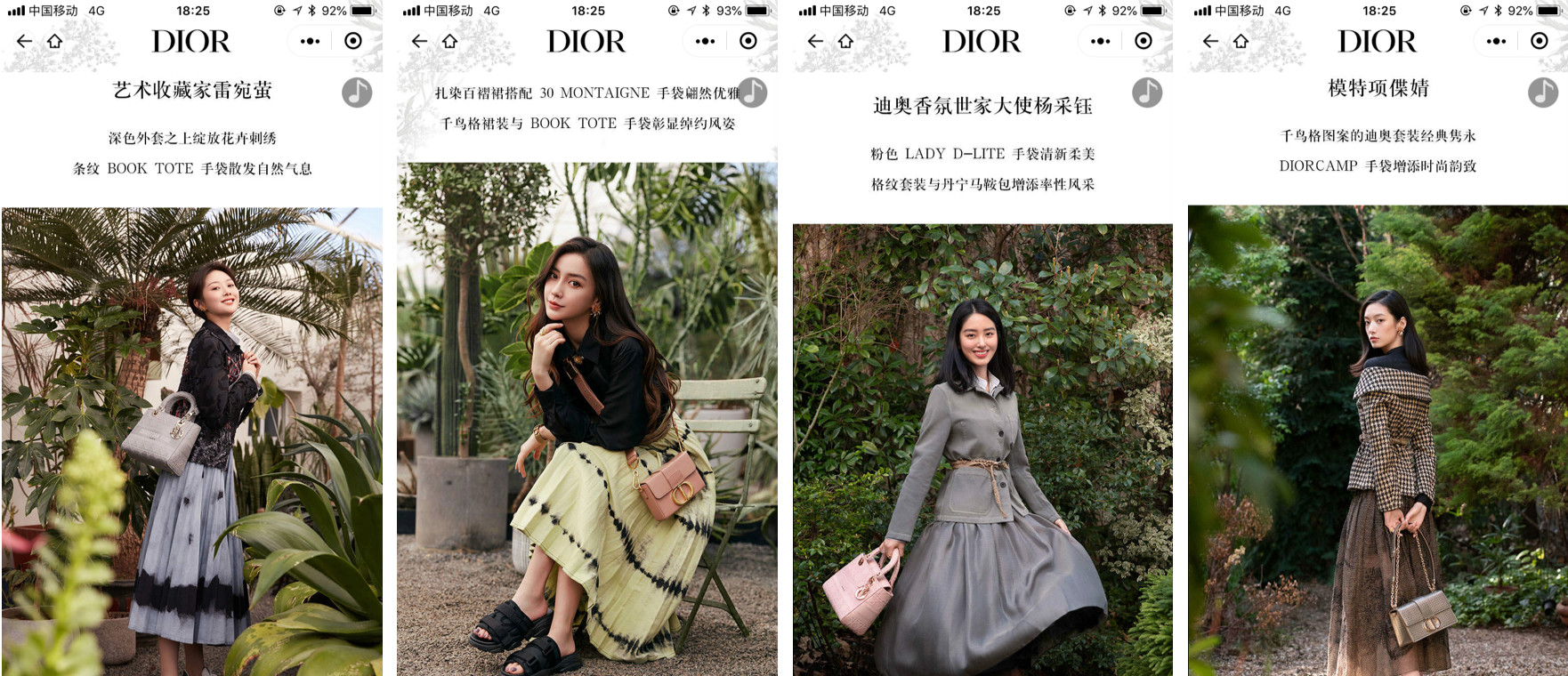 在最新的DIOR迪奥小程序中,不仅有包括Angela Baby,杨采钰等在内的多位明星演绎二零二零春夏系列。