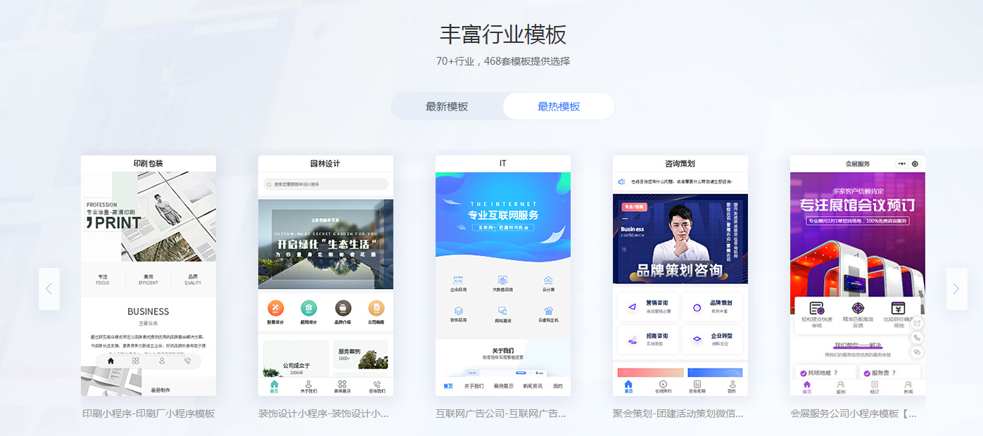 3)进入官网模板中心,根据自己的喜好和需求,挑选一款小程序模板;