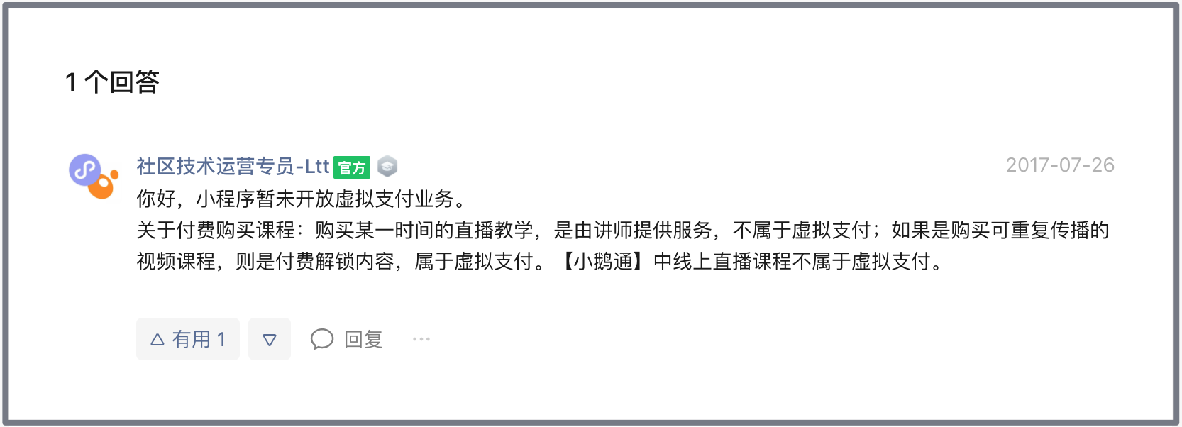 关于一个支付业务到底是不是虚拟支付,在有参考的情况,可以根据官方的