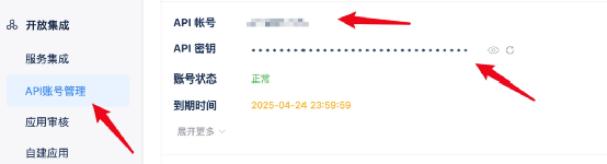 公司管理->API账号管理->获取API账号和密钥