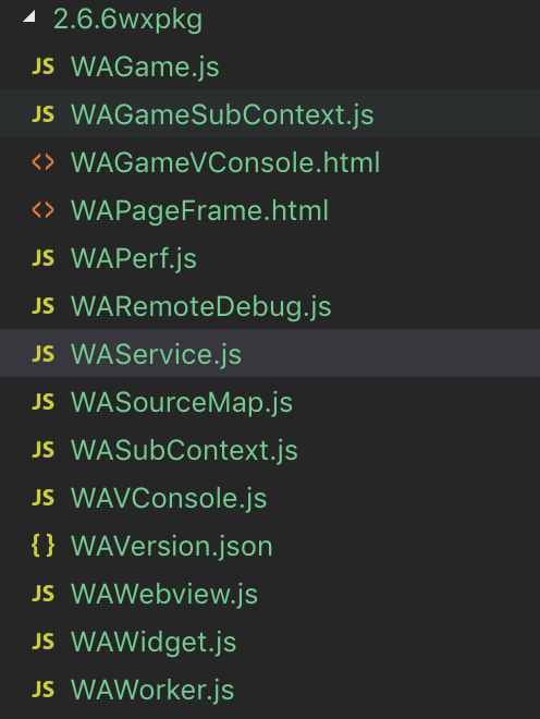 我们可以看到小程序各版本的运行时包 .wxvpkg。.wxvpkg 文件可以使用 wechat-app-unpack 解开,解开后里面就是