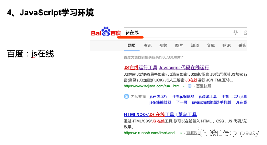 我们可以通过百度搜索:js在线,就可以找到非常好用的js代码运行工具
