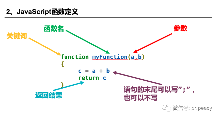 我们首先来学习一下,在js中,函数是如何定义的,比如我们要定义一个函数,实现2个数字的加法运算。首先需要使用关键词function来定义函数,接着是函数名,括号里的是该函数被调用时需要传递的参数。