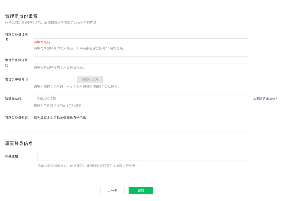 选择找回账号,包括充值账号和管理员。所以要先准备好新邮箱和新的管理员信息。包括管理员姓名、身份证、手机、绑定了银行卡的微信。