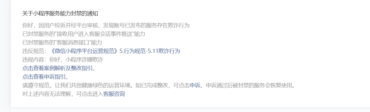 大佬们,第一次接触小程序还没有上线,现在只有体验版是我一个人访问,这个应该修改哪里呀,appid:wx9cedc2afc46c22f3,我看了一下目前就是小程序里的客服功能,不能回复消息了,回复了对方也看不到