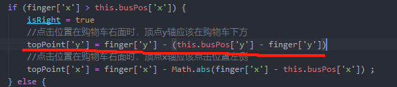点击物品后记录点击的位置,然后根据点击位置计算出抛物线的顶点位置,计算方式为点击位置的上方+150,右边+150(需要根据点击位置是否在购物左边还是右边进行判断)。 -