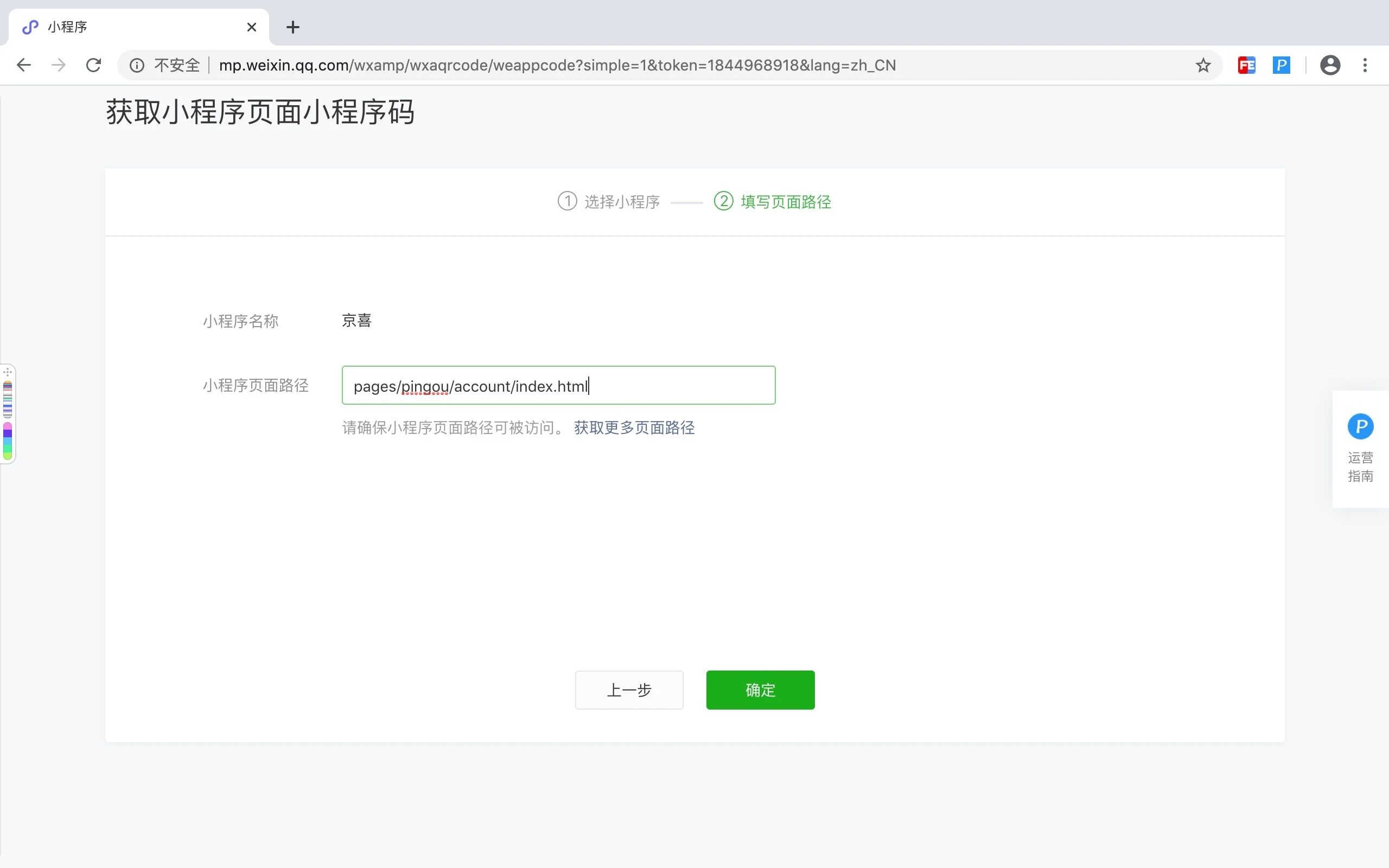 这个时候就可以去京喜小程序提取固定某个页面的链接,从而生成当前page的小程序码了。