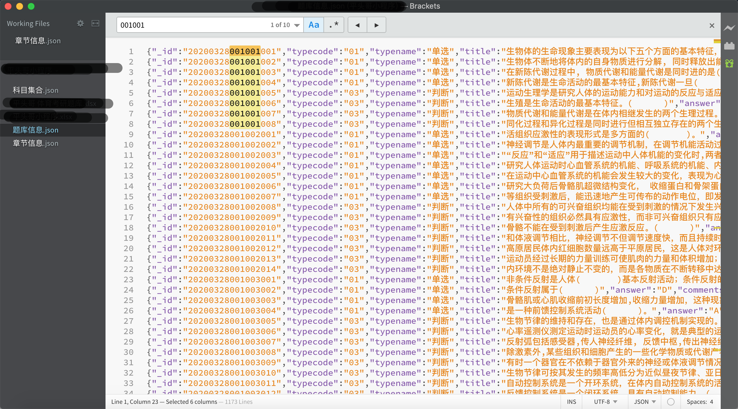 我有一个题库,题库的id是有一定规律的,我要从id里面提取含有001001字符串的记录,具体截图如下所示