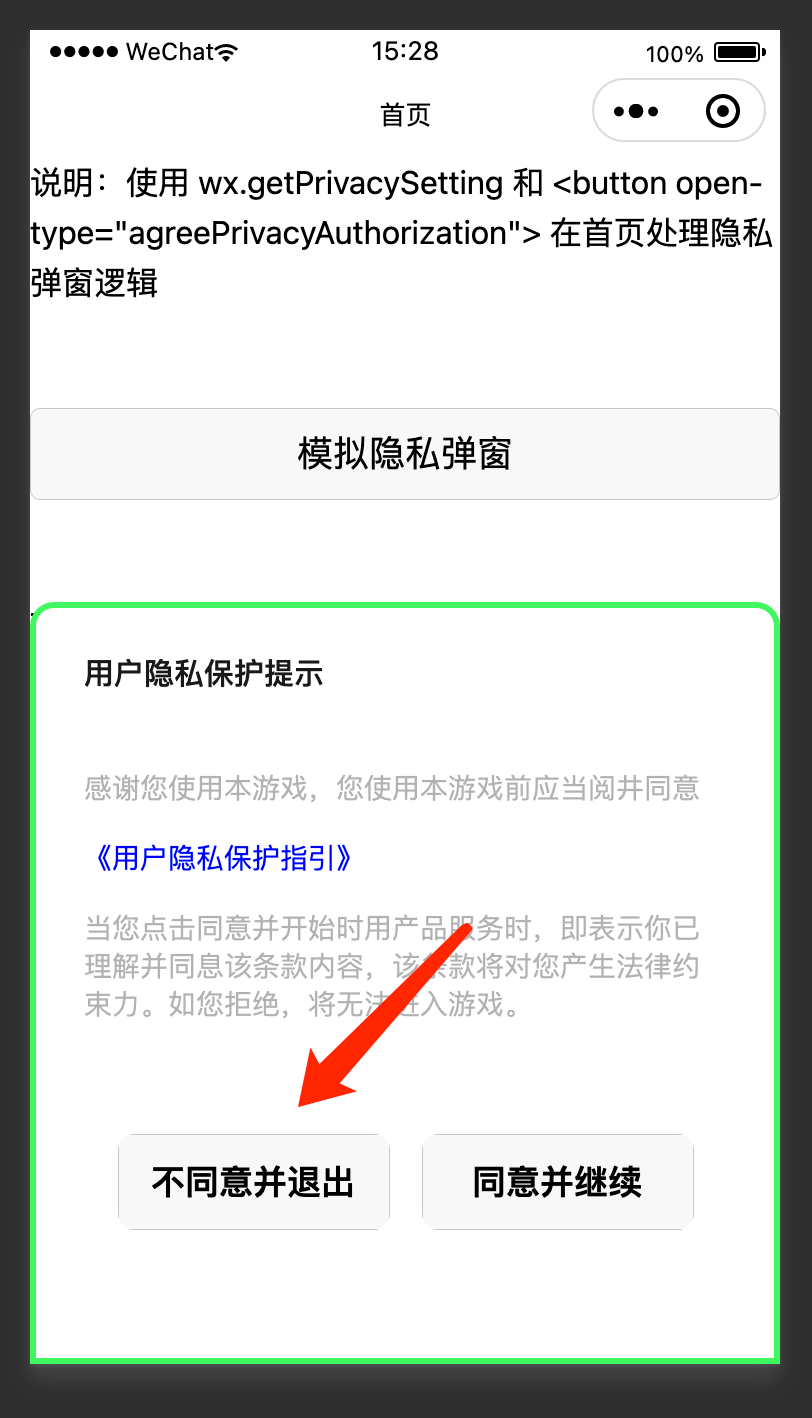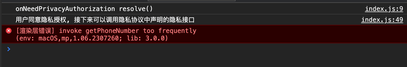 如果通过按钮类型的隐私接口来触发回调,会有bug。你等同意隐私后再点获取手机号按钮,会报频繁使用的错误。实际应用中,就都用模拟接口来触发隐私弹窗,同意后在回调里使用具体api,或者引导用户点击按钮。