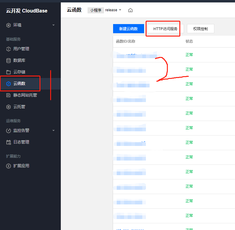 3,选择云函数,点击http访问