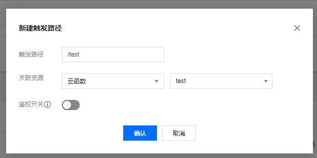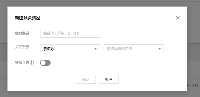4,新建对外调用URL,填写出发路径 ,及对应的云函数实例