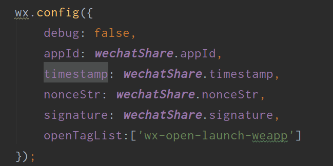 在wx.config下面多了一项openTagList,开放标签列表,目前支持配置wx-open-launch-weapp,wx-open-launch-app