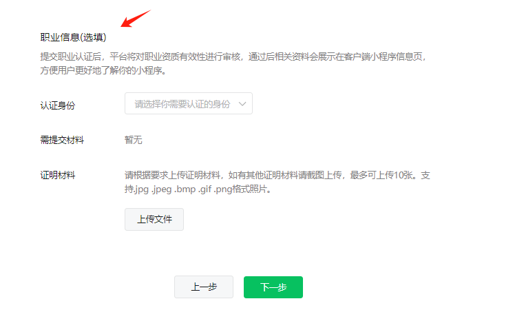 这个职业信息,和视频号的个人职业认证差不多,比如你选择某个职业,会要求你提供该职业的相关证明(和视频号个人职业认证要求差不多)。
