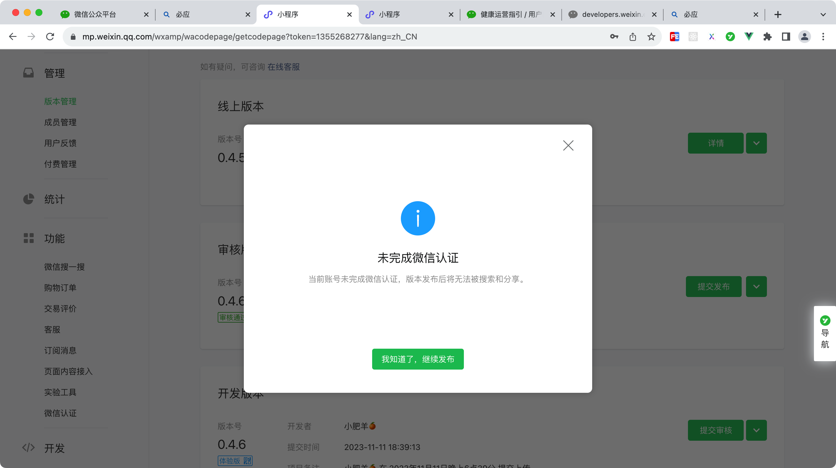 小程序后台会显示认证后的状态。