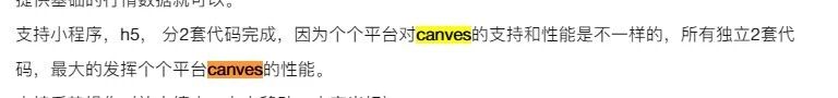 支持小程序,h5, 分2套代码完成,因为个个平台对canvas的支持和性能是不一样的,所有独立2套代码,最大的发挥个个平台canvas的性能。