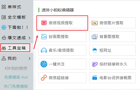 如果是需要使用他人公众号文章的视频,首先需要和对方先取得同意,因为这会涉及到侵权问题;如果是已经确定了可以使用其视频,可以将公众号文章的链接进行复制,打开工具,点击微信视频提取;