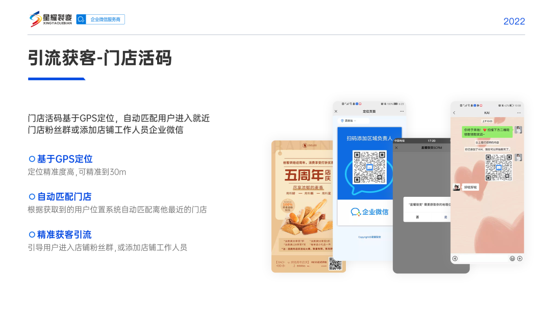 用户扫描门店活码后,系统会基于GPS定位,自动匹配用户进入就近门店粉丝群,或添加就近门店工作人员企业微信号。