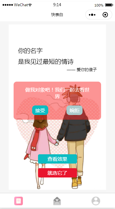 快表白小程序拒绝尴尬表白、拒绝庸俗、真正可以帮你快速表白成功,