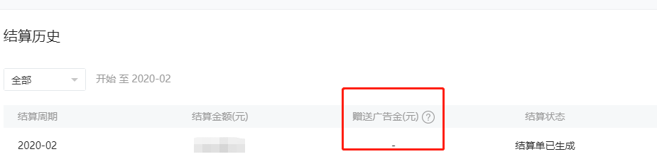 你好,结算记录里只显示结算金额和转充金额,请问赠送的广告金在哪里显示?