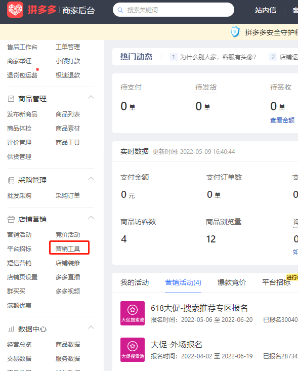 第二部 选择全部营销工具在里面往下拉找到分享店铺然后点进去复制链接