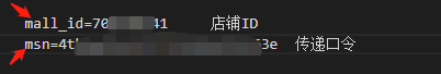 复制出来的链接里的这两个就是你店铺的ID和传递口令 其余部分都可以扔掉