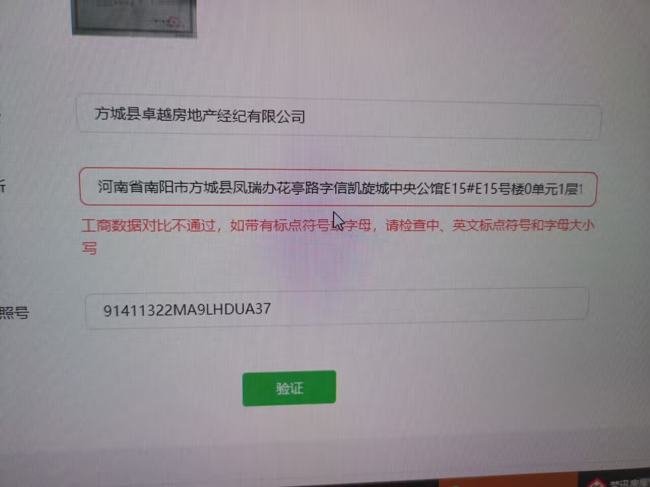 一、工商数据对比不通过,如带有标点符号或字母,请检查中、英文标点符号和字母大小写