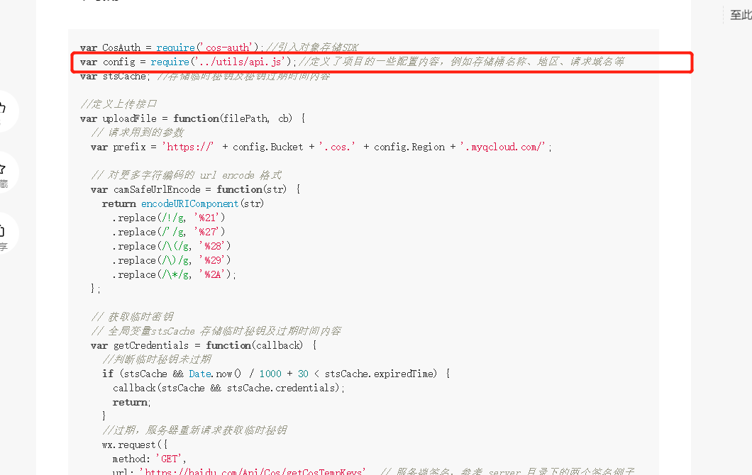 var config = require('../utils/api.js');//定义了项目的一些配置内容,例如存储桶名称、地区、请求域名等