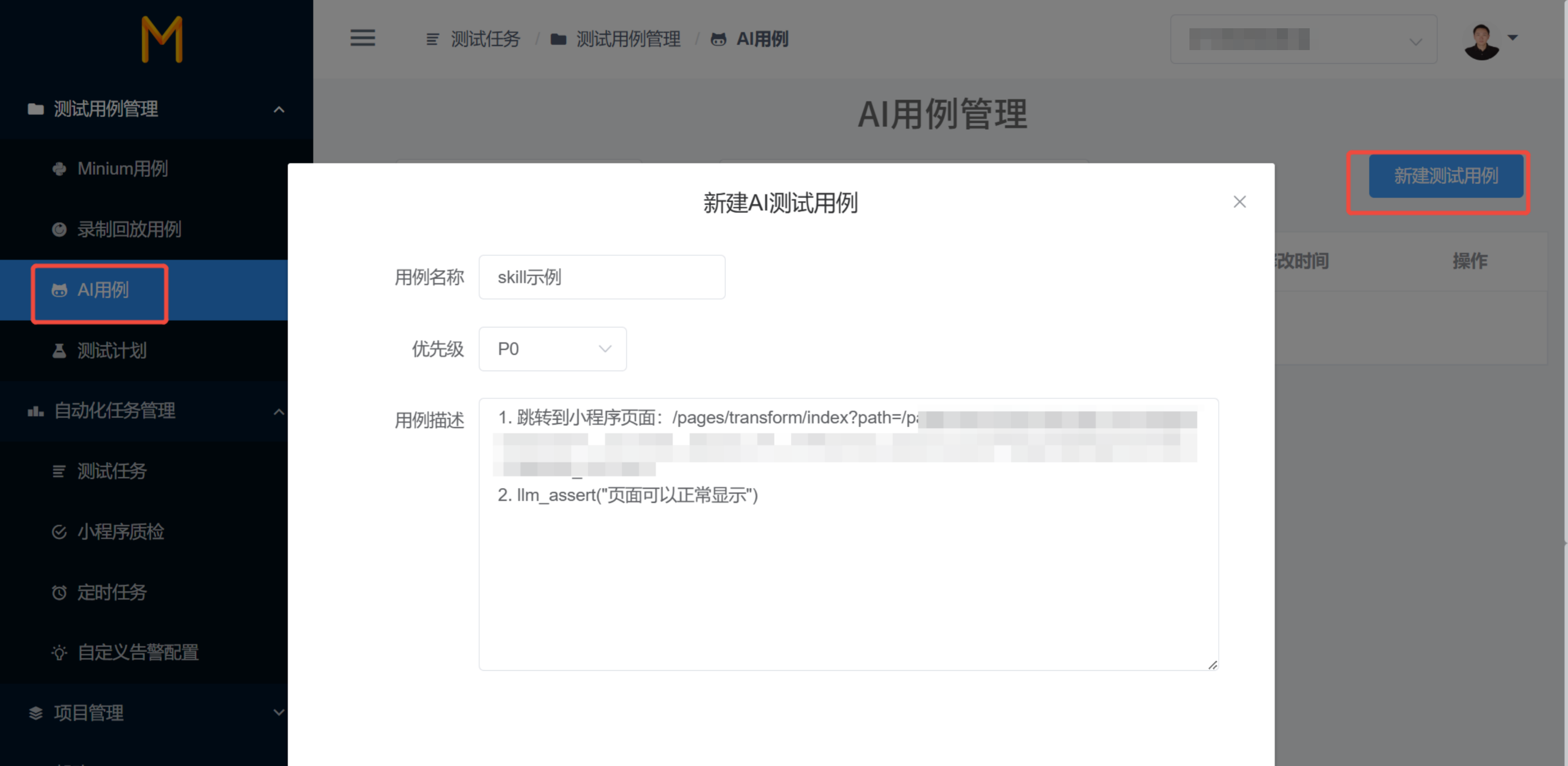 1、新建AI用例