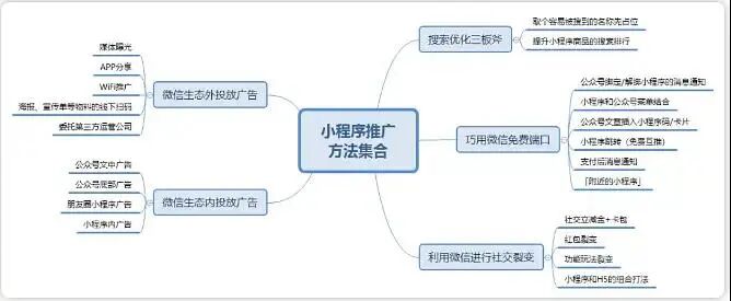 最后,我们用一张思维导图总结下小程序的21种推广方式: