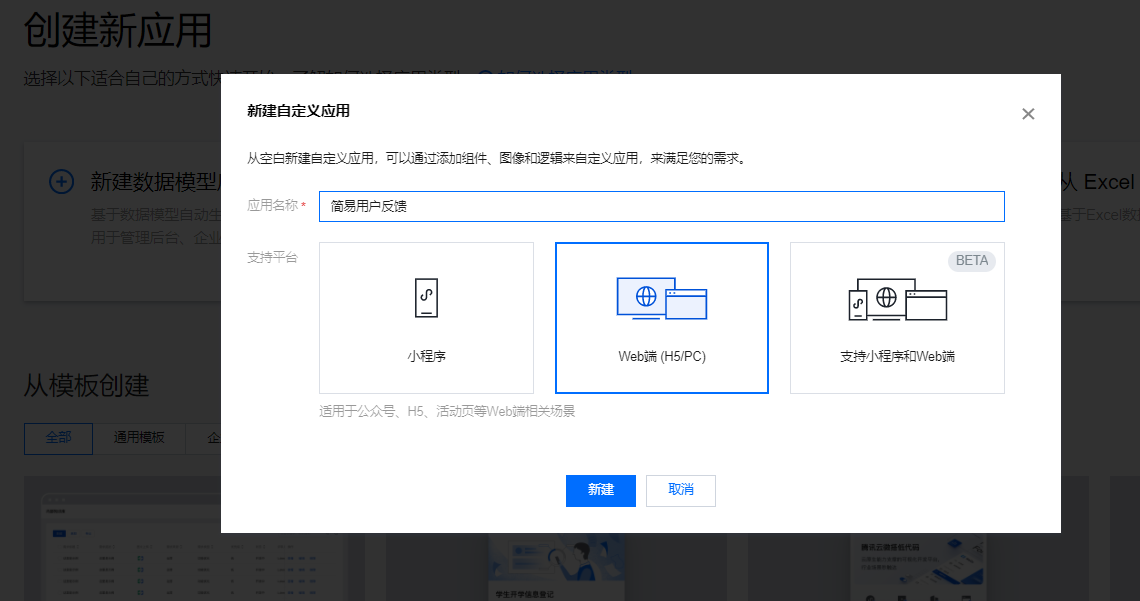 *我们选择创建一个WEB端(H5/PC)项目,名字叫简易用户反馈。