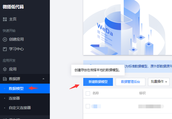 位置:应用开发-》数据源-》数据模型-》新建数据模型