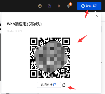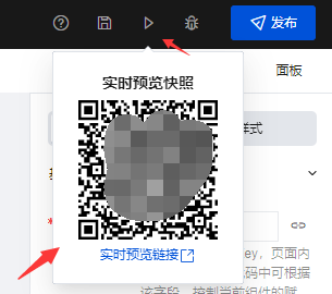 点击页面右上角的发布按钮,会展示发布弹出层,可以选择发布方式(正式版或体验版),可以设置应用版本号。