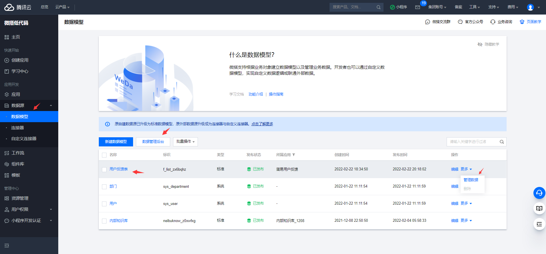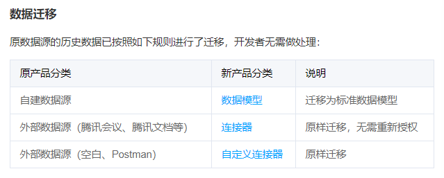 早期参与微搭项目的网友需要注意,微搭数据源做了升级,对照关系如图:
