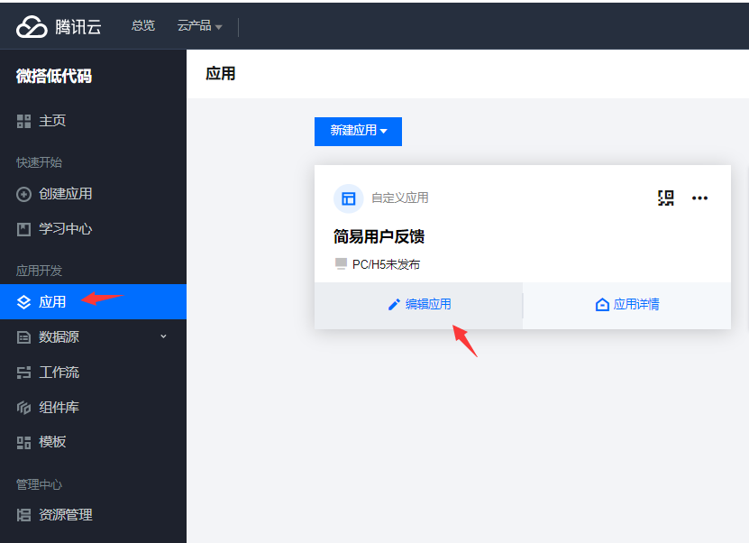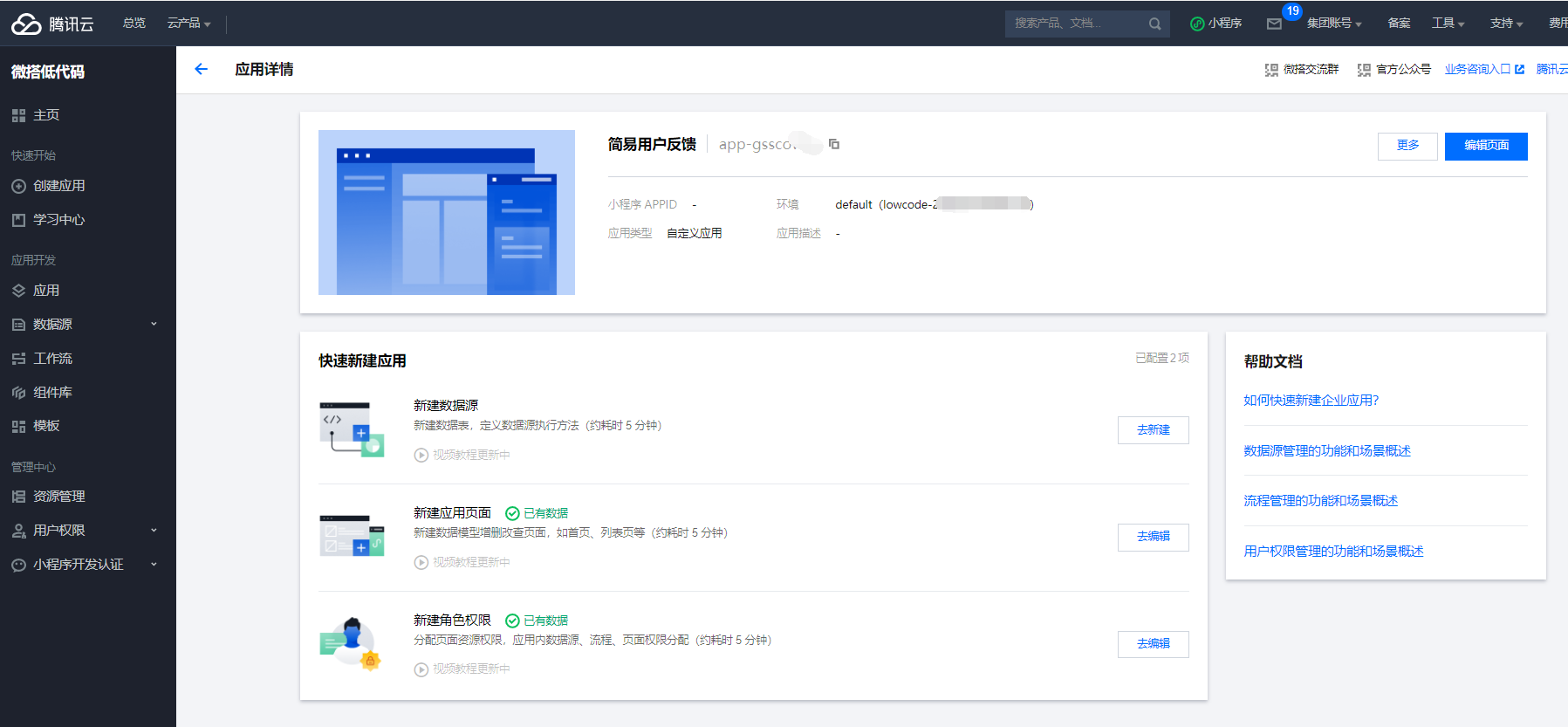 位置:应用开发-》应用-》编辑应用-》进入应用页面编辑