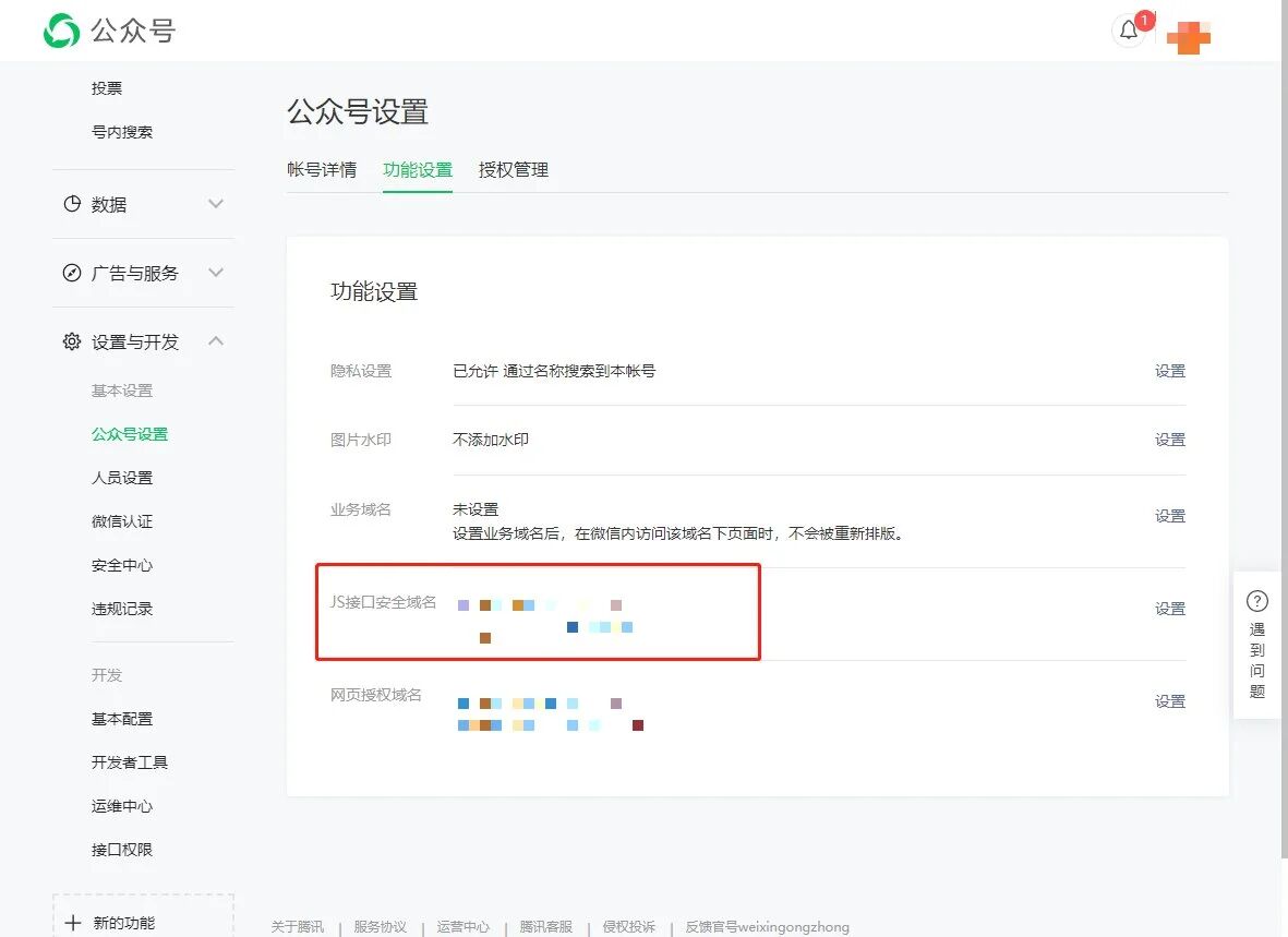 1.在微信公众号(已认证的服务号)绑定“JS接口安全域名”