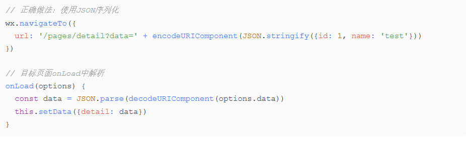 小程序页面跳转通过URL参数传递数据时,只能传递字符串类型,无法直接传递对象或数组