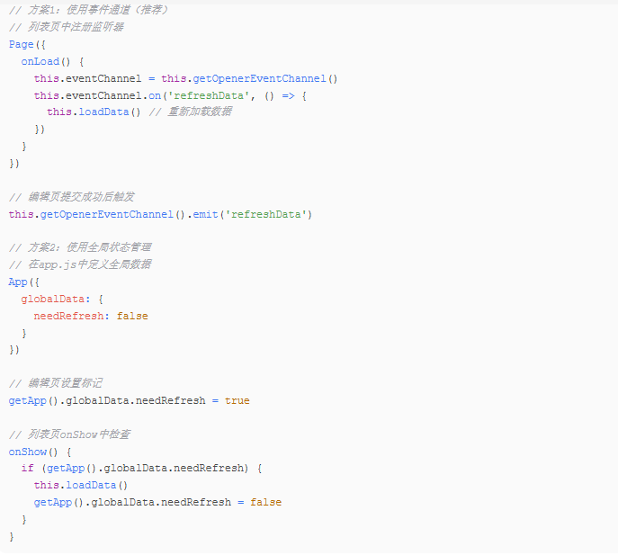 常见场景:从列表页进入编辑页,编辑后返回列表页需要刷新数据