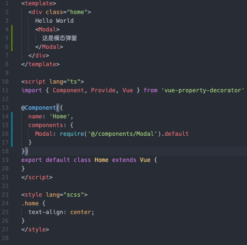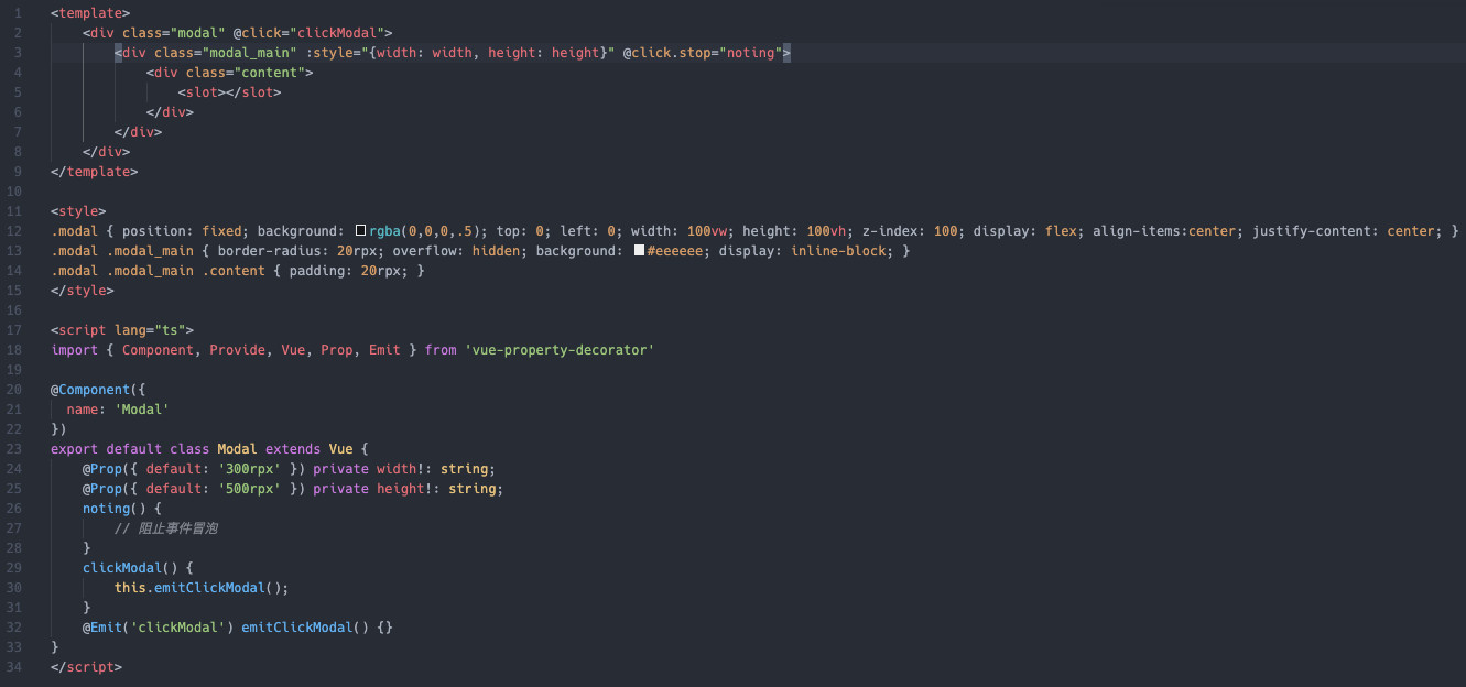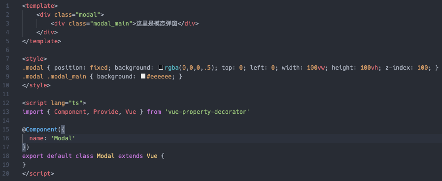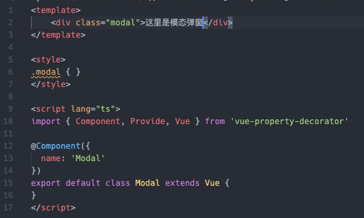 - 我们先创建一个空的 vue 组件,我这里命名为 Modal