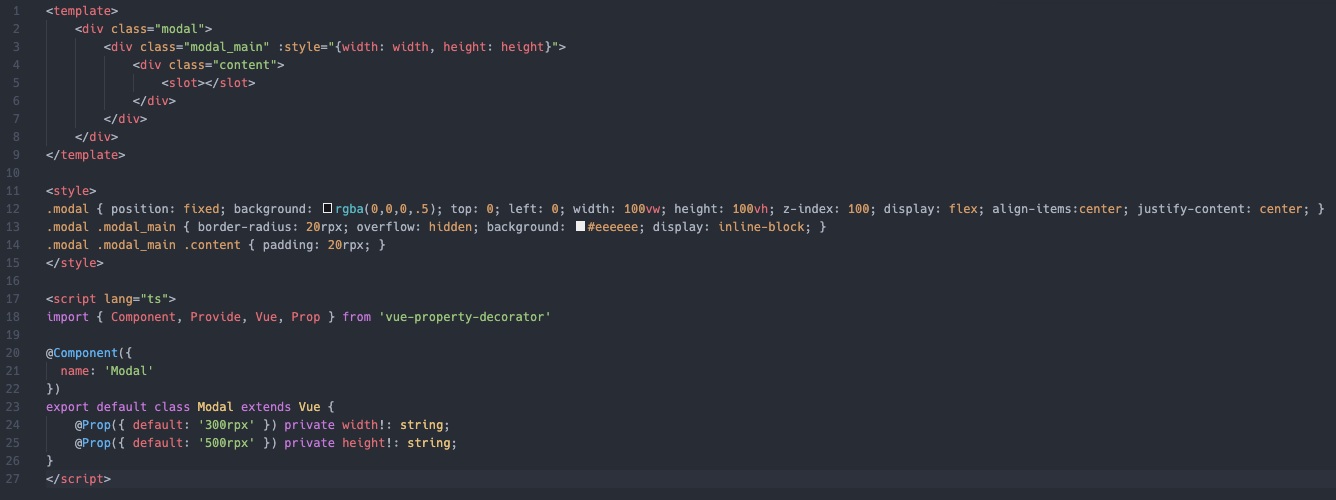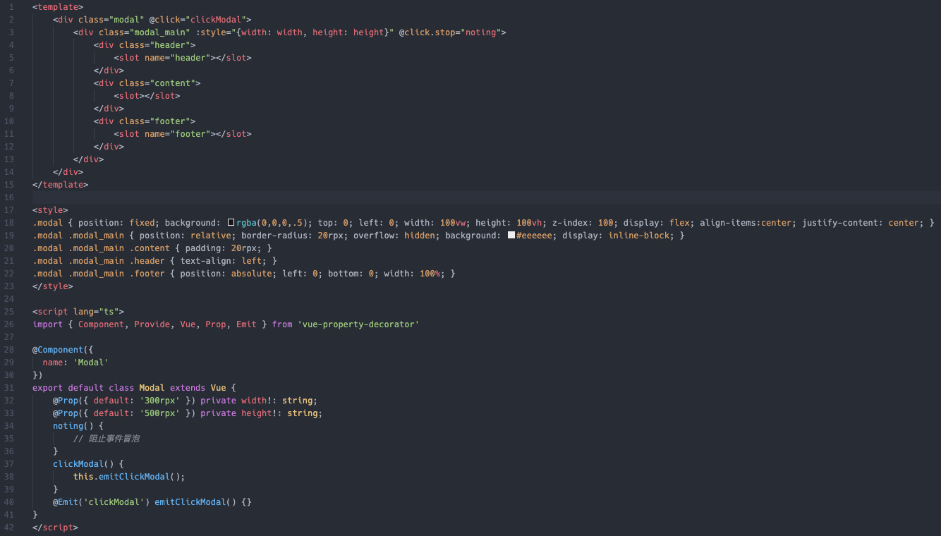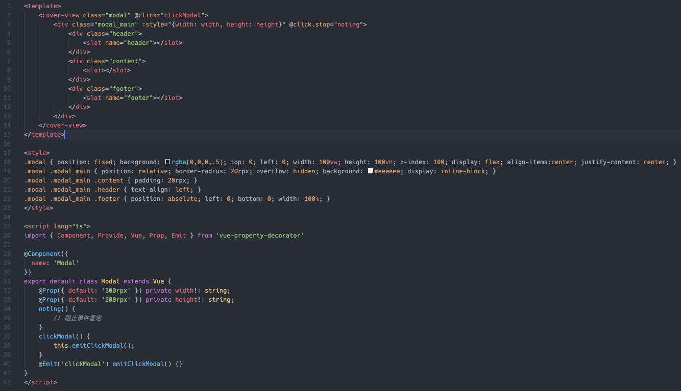 - 是不是有内味儿了?但毕竟是模态弹窗组件,显示什么内容应该由页面来决定,所以,slot 走起!