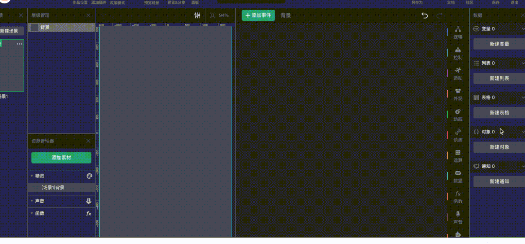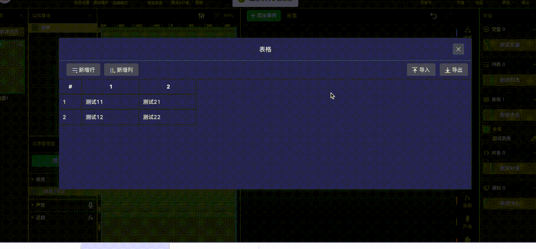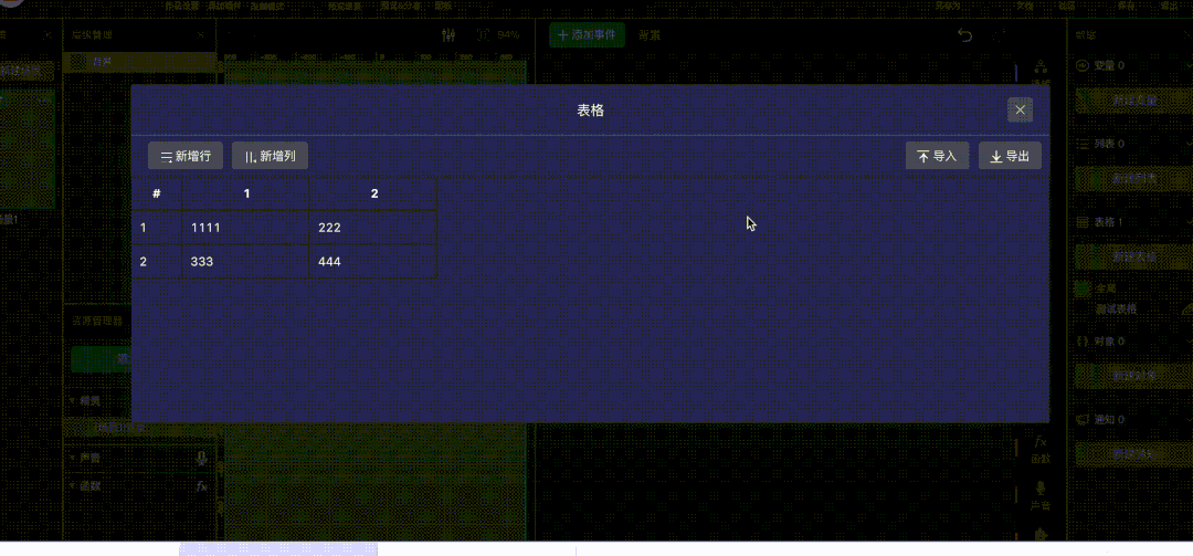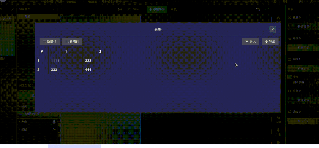 想要做好游戏,数据是非常关键的。目前在我们的小游戏可视化开发工具中,一共有5种数据类型:变量、列表、表格、通知以及对象,其中列表和表格有导入和导出的功能。