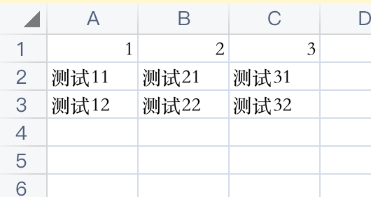 查看导出的表格,发现第一行有1和2两个数据。这个其实是对应了我们工具里面的列数,当我们每新增一列,都要填上对应的序号: