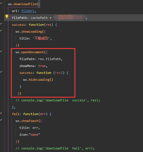 建议在前面的基础上再加上这个,下载之后直接打开,要不然还得自己去文件管理里面搜;如果是word等之类的文件,建议设置showMenu这个属性,方便下载之后自己可以操作,也可以转发来实现快速找到目标文件